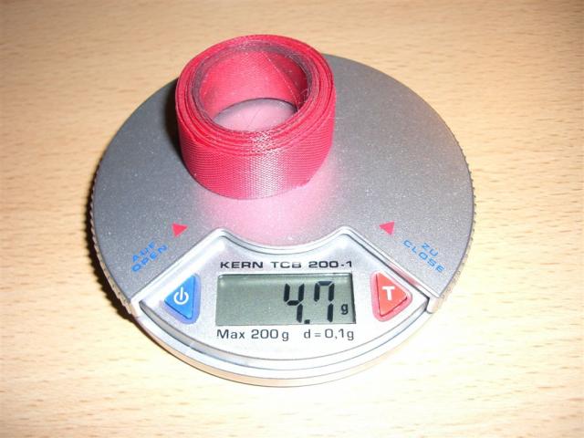 Velox - Klebeband für 2 Schlauchreifen 32,7 gr. Datum 17.12.2009 Reifenklebeband für 2 Garnituren. Nettogewicht für 2 Laufräder knapp 25gramm.
